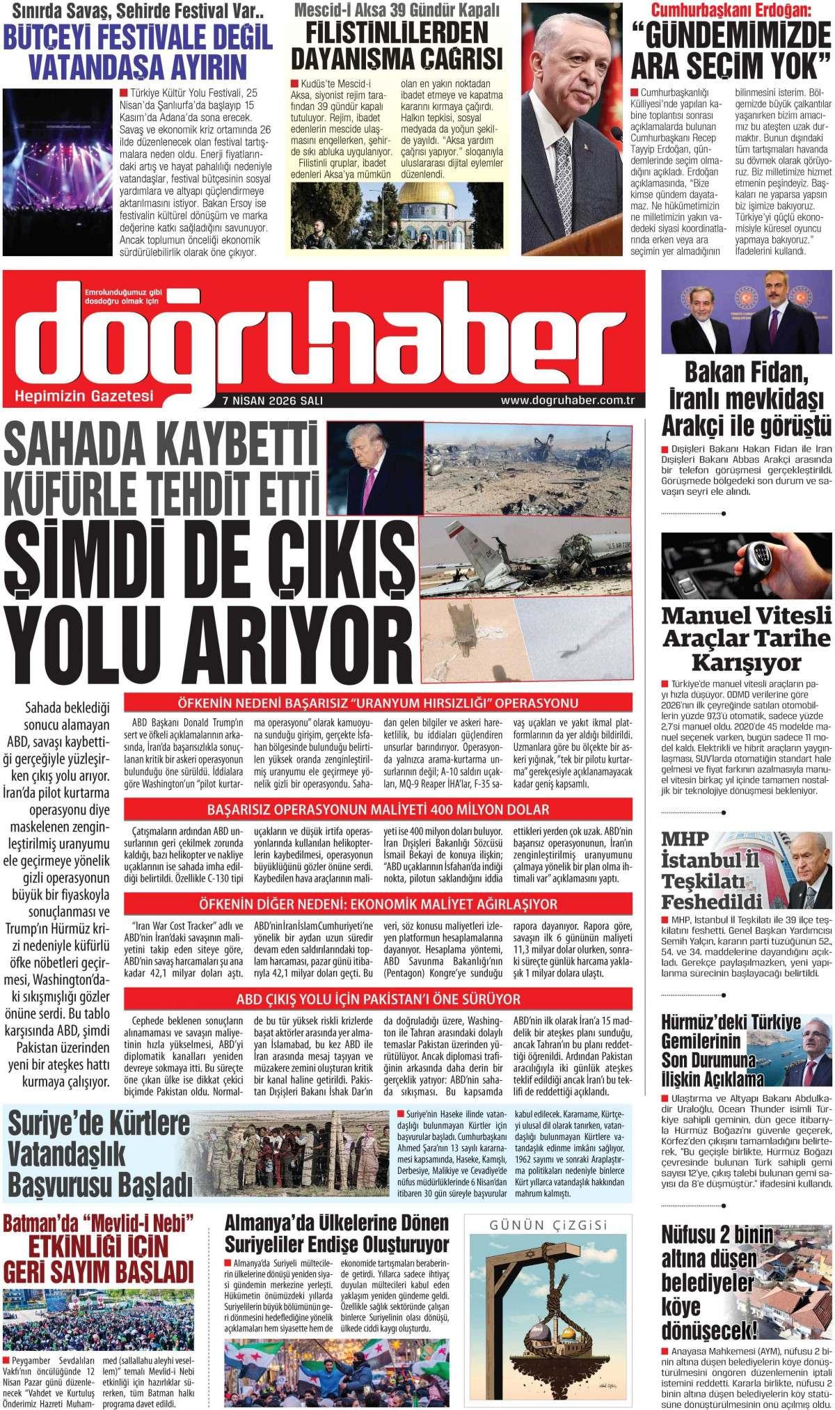 Doğru Haber Gazetesi 7 Nisan 2026 Günü Gazete Manşetleri
