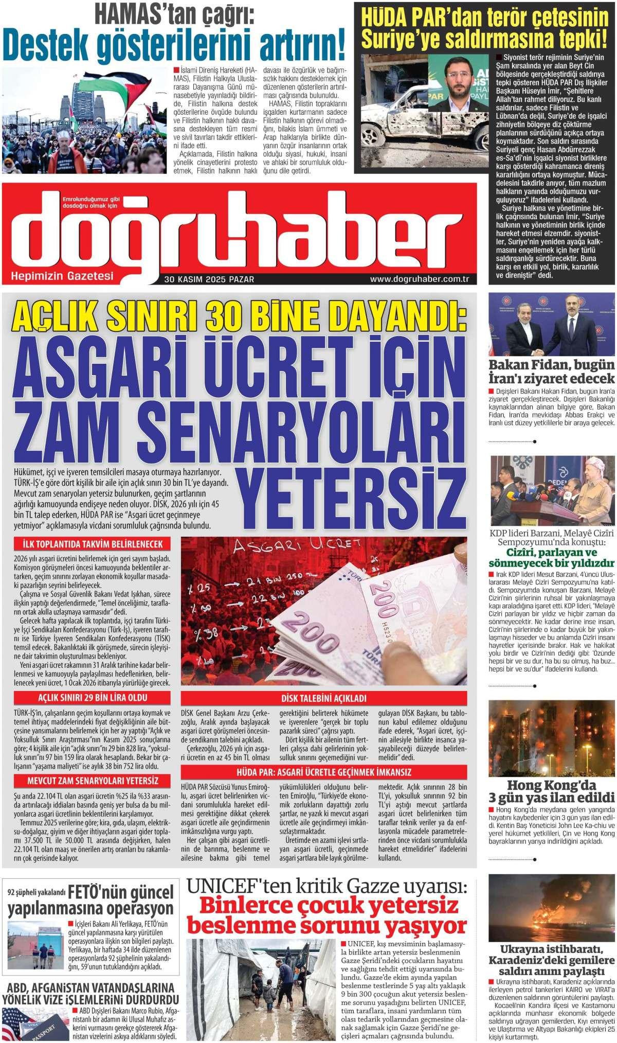 Doğru Haber Gazetesi 1 Aralık 2025 Günü Gazete Manşetleri