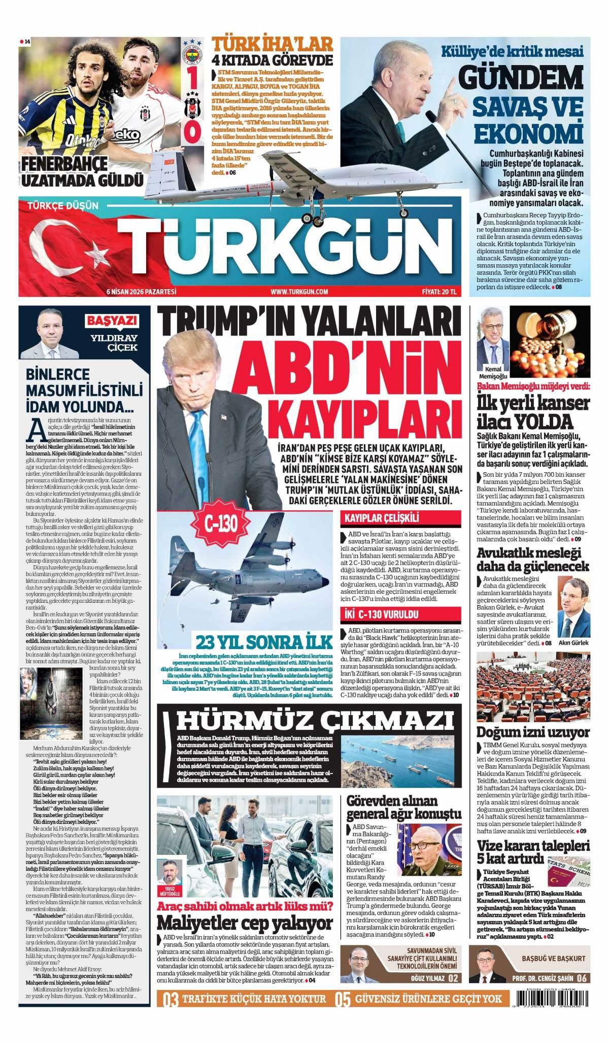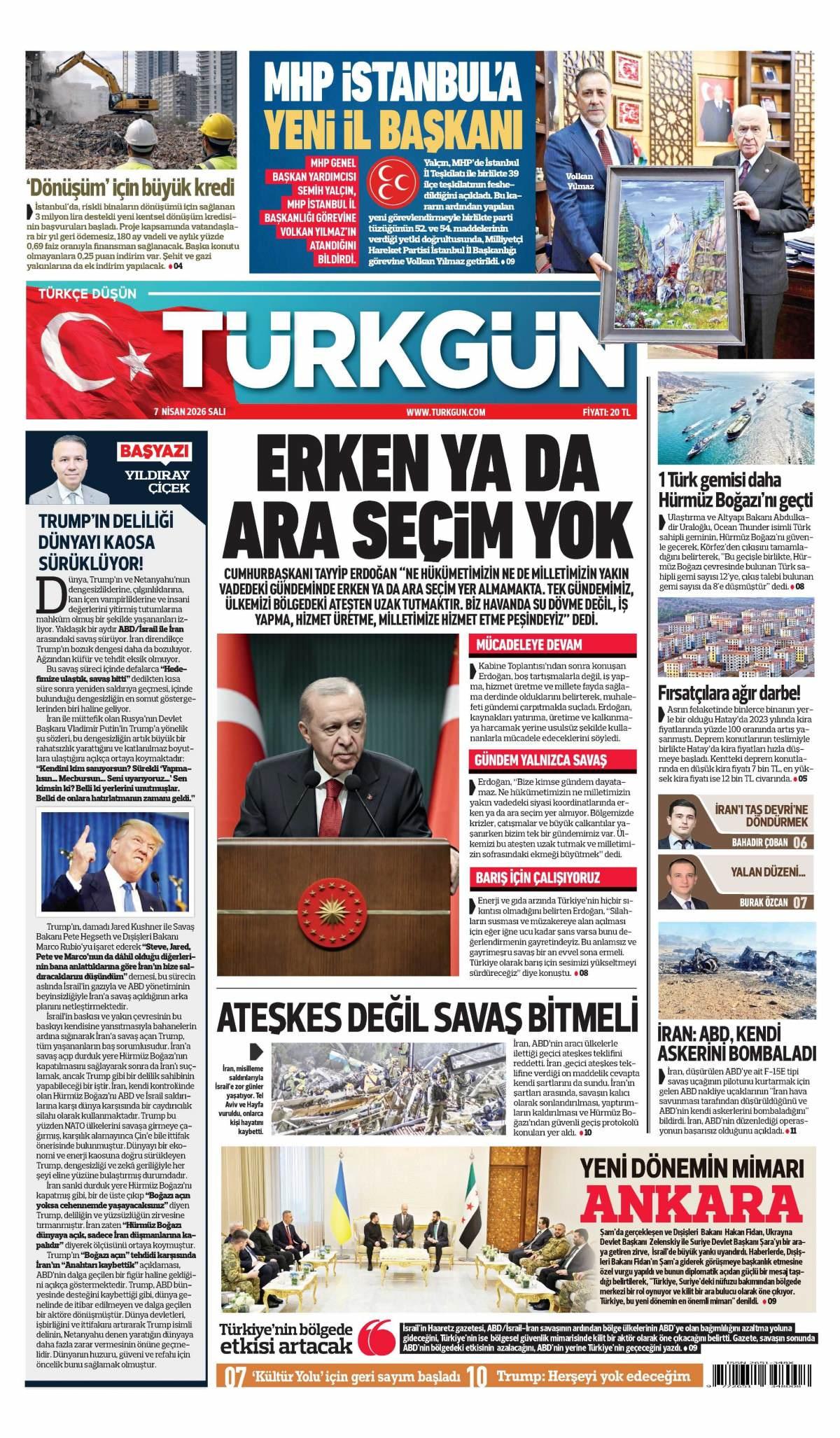 Türkgün Gazetesi 7 Nisan 2026 Günü Gazete Manşetleri
